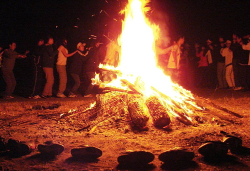 种欢庆的形式一直延续到今天,就形成了篝火晚会。